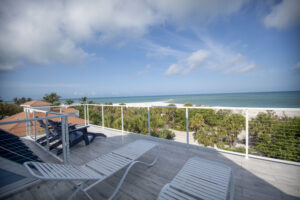 Third Floor: A rooftop sun deck provides sunrise and sunset views with Adirondack chairs and loungers—the perfect place to soak in the coastal atmosphere.