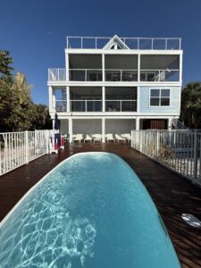 Guests will have full private access to the home, pool, rooftop deck, and all outdoor amenities. The home is elevated on pilings, so the main living spaces begin on the first floor, which is only accessible by stairs. Please note there is no elevator in this property. Stairs connect all levels, including access to bedrooms, living areas, and the rooftop deck. Two golf carts are included for guest use during the stay, making it easy to get around the island. The private beach path, pool area, propane grill, outdoor shower, and enclosed changing room are all exclusively for guest enjoyment, ensuring complete privacy throughout your stay.