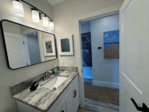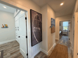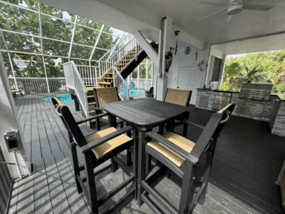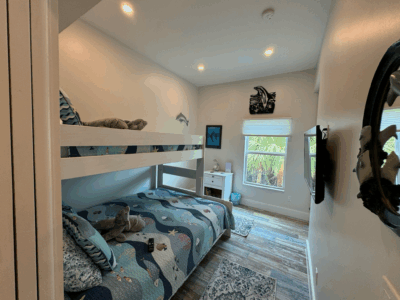Located just a quick walk or golf cart ride from one of the island’s most serene beaches, Manatee Haven offers the best of both worlds—proximity to the shore and a private resort-style experience at home. The ground level features a 15’ x 33’ heated pool, oversized hot tub, and a full outdoor kitchen complete with gas grill, ice maker, and refrigerated drawers—all under a 3,200 sq ft screened enclosure with room to dine, lounge, and play without worrying about bugs or weather.