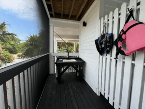 Climb the spiral stairs to the crow’s nest rooftop deck, one of the highest vantage points on the island, where you’ll enjoy unforgettable 360-degree views of the Gulf, Pine Island Sound, and surrounding nature.