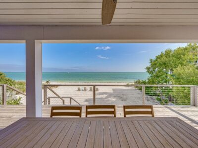 Guests have access to the entire home, private bayfront beach, multiple decks, and an outdoor shower, plus two golf carts for exploring the island. You’ll also enjoy North Captiva Island Club amenities, including two community pools, hot tub, and a restaurant and bar.
