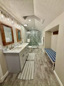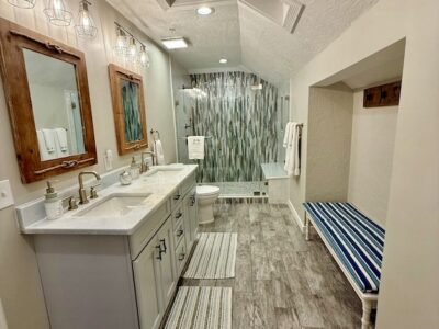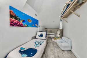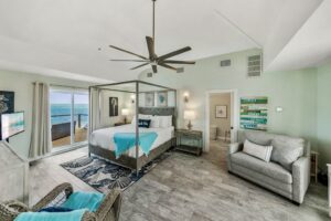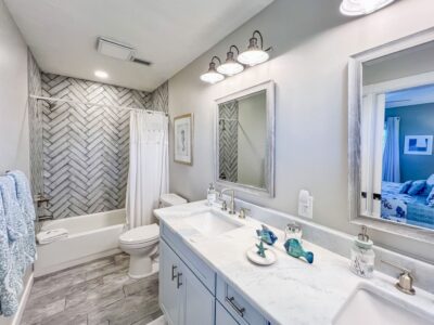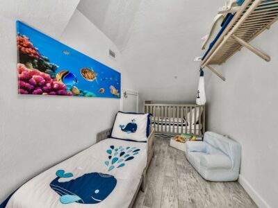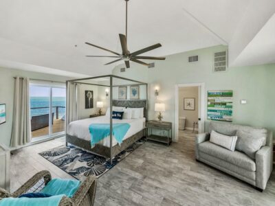 Sea La Vie offers 4 bedrooms, including 3 private king suites, each with its own full bathroom, plus a cozy bunk room that’s perfect for kids or teens. The primary suite includes a king bed, private bath, and a balcony overlooking the bay. The second and third suites each offer king beds and en-suite baths, providing comfort and privacy for everyone. The bunk room creates a relaxed and playful space for younger guests to sleep and unwind.