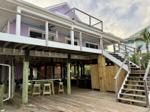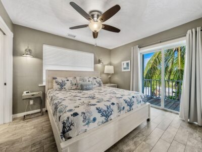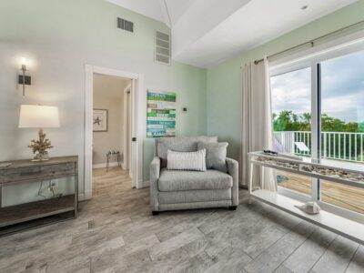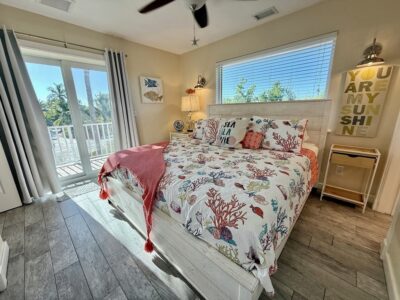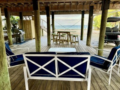Step outside and the bayfront shoreline is just steps from your door—calm, gentle, and perfect for shelling, wading, and watching dolphins and manatees drift by. Multiple decks and seating areas offer places to sip morning coffee, read in the afternoon shade, or watch the water glow at sunset. The outdoor shower is a favorite after beach time—simple, refreshing, and part of the ease of island living.